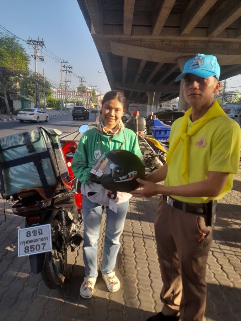 📌ร่วมแจกหมวกนิรภัยตามโครงการจิตอาสาจราจร รณรงค์การขับขี่ปลอดภัย เมืองไทยไร้อุบัติเหตุ สวมหมวกนิรภัย เพื่อลดอุบัติเหตุจราจรทางบกในช่วงเทศกาลปีใหม่ พ.ศ.2568 ตำรวจภูธรจังหวัดนนทบุรี บริเวณแยกสวนสมเด็จ ตำบลบ้านใหม่ อำเภอปากเกร็ด จังหวัดนนทบุรี