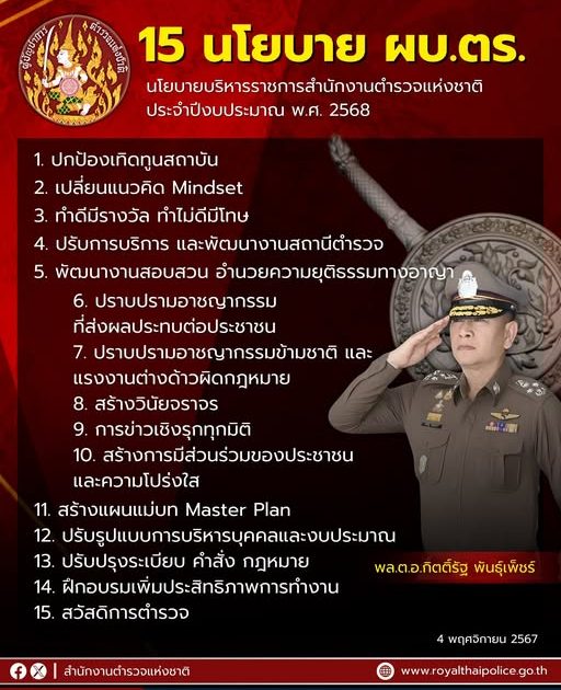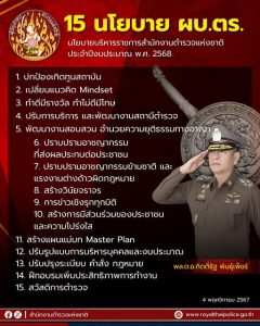 15 นโยบาย พล.ต.อ.กิตติ์รัฐ พันธุ์เพ็ชร์ ผู้บัญชาการตำรวจแห่งชาติ