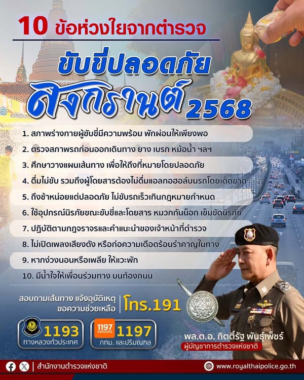 10 ข้อห่วงใยจาก ( ใจ ) ตำรวจ สงกรานต์ 2568 ขับขี่ปลอดภัยเดินทางถึงที่หมายไปหาคนที่ท่านรัก . 1. สภาพร