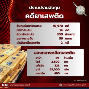 เฮโรอีน 326 กก. ยาอี 85,000 เม็ด เคตามีน 480 กก.